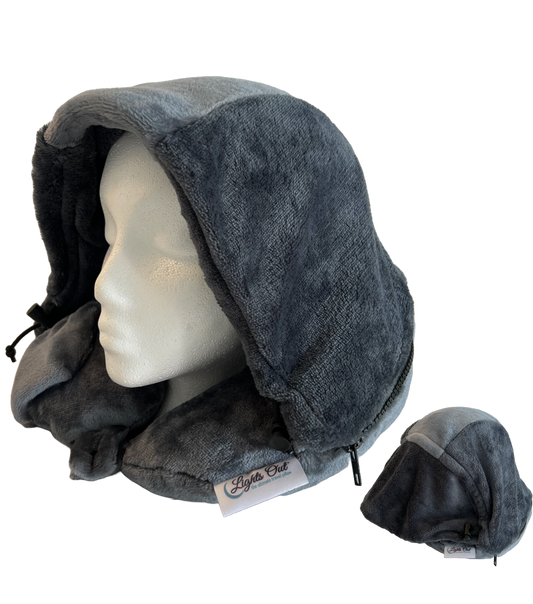 Lights Out with Hoodie, Full Face Coverage and Contour Neck Support. Perfect Travel Pillow for Sleeping in Car, Airplane, Bus or Train.